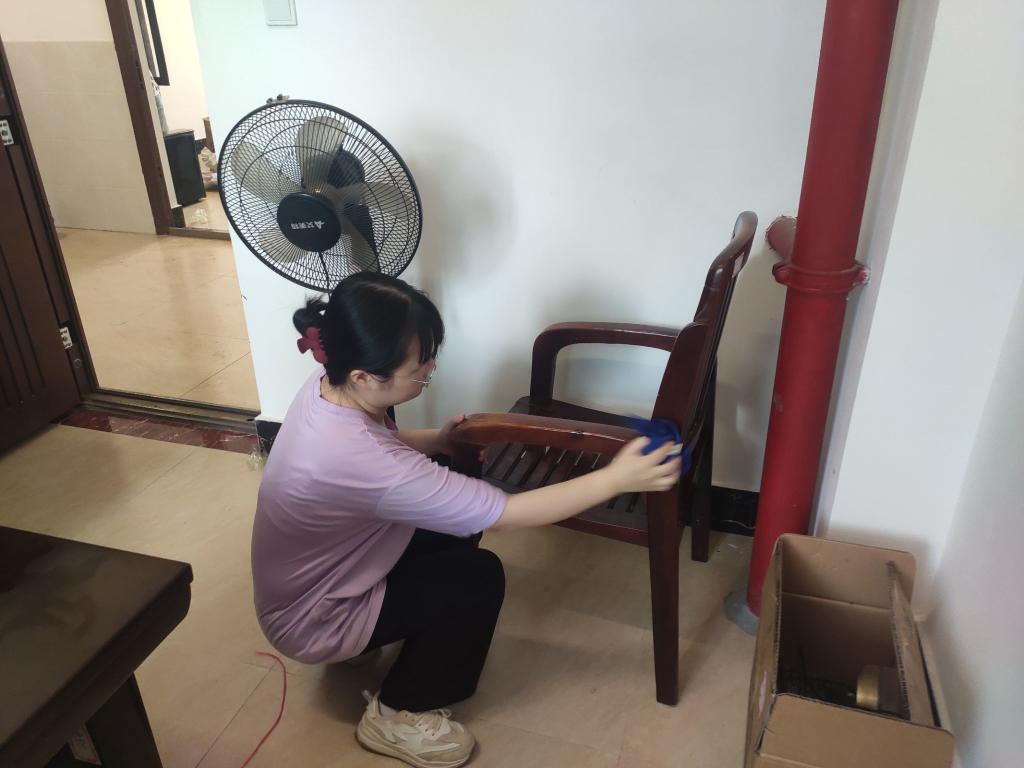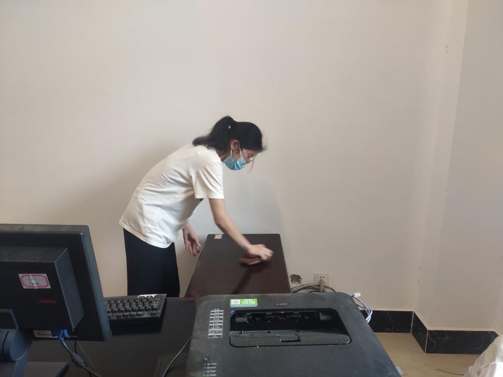 本次志愿活动工作主要是志愿者为新民楼A303-A308办公室打扫卫生和整理物品。活动开始,工作人员向志愿者讲述活动要求,并将14名志愿者分成了两个小组,一组7人,分别负责新民楼A303和A304-A308办公室的卫生。活动中,志愿者们明确分工,密切配合,有条不紊地清扫办公室地上的垃圾,擦去桌面的碎屑污渍,并帮助整理相关书籍,细致认真地擦洗窗户、摆放物品。经过两个小时的清扫整理,志愿者们把办公室打扫得干净整洁,焕然一新,圆满完成了此次志愿活动。