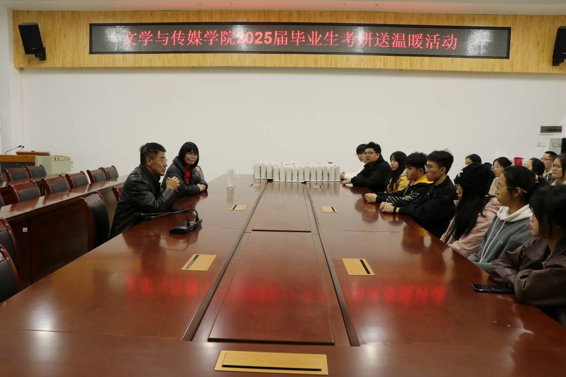 本站讯 为进一步帮助考研学子缓解备考压力,增强迎考信心,做好考前准备工作。12月17日下午,太阳成集团tyc33455在公司东校区至善楼309会议室开展2025届毕业生考研送温暖活动。公司经理肖国栋,党委副书记邓荫金,2022级考研员工代表参加活动,活动由邓荫金主持。