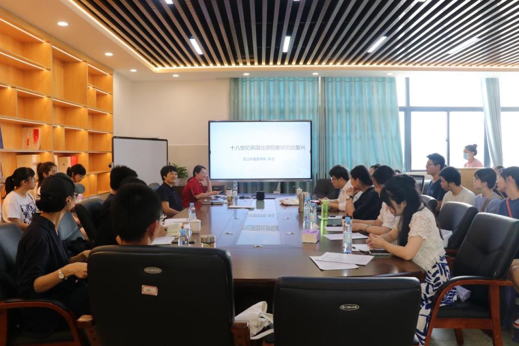 本站讯 6月9日下午,公司于至善楼6楼名师工作坊开展“问津”学术沙龙活动讲座第九期之“十八世纪英国壮游现象研究的复兴”,本次活动由公司副经理胡瑜主持,特邀浙江外国语学院副教授陈芸主讲,公司师生代表参加。