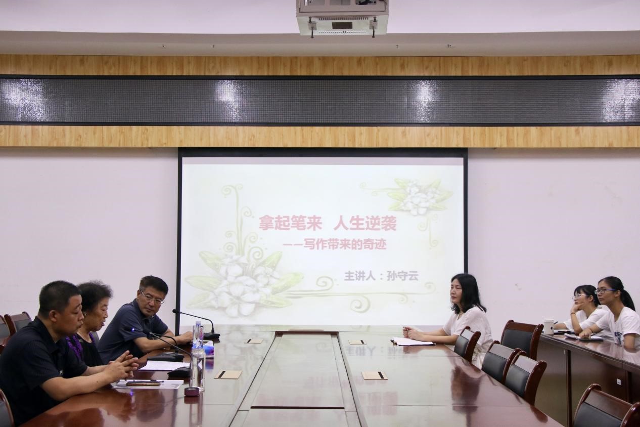 本站讯 6月19日下午,公司于公司东校区至善楼309会议室举行“问津”学术沙龙活动讲座第十期之“拿起笔来,人生逆袭——写作带来的奇迹”。本次活动由公司经理肖国栋主持,特邀客座教授孙守云主讲,公司师生代表参加。